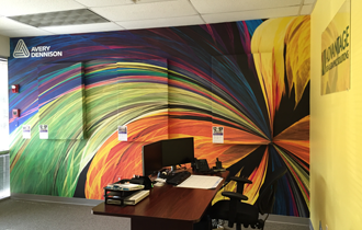 The other new category was the MPI 2600 line of Digital Wall Films. These printable films came in three textures, Pure Canvas, Crushed Stone and Natural Stucco, along with a removable matte film MPI 2611. A great example of the new film in use is this swirl of color from the lobby of the Advantage Sign & Graphics Solutions office.