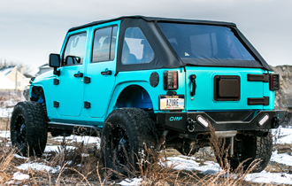 Along with these new lines of film, two new Giovanna Edition Supreme Wrapping Film™ colors made their debut. Satin Pearl Koko and Satin Azure furthered the wrapping film line’s reputation for durability and beauty. Phenomenal Vinyl showed off both these characteristics with an off-road vehicle wrapped in Satin Azure.